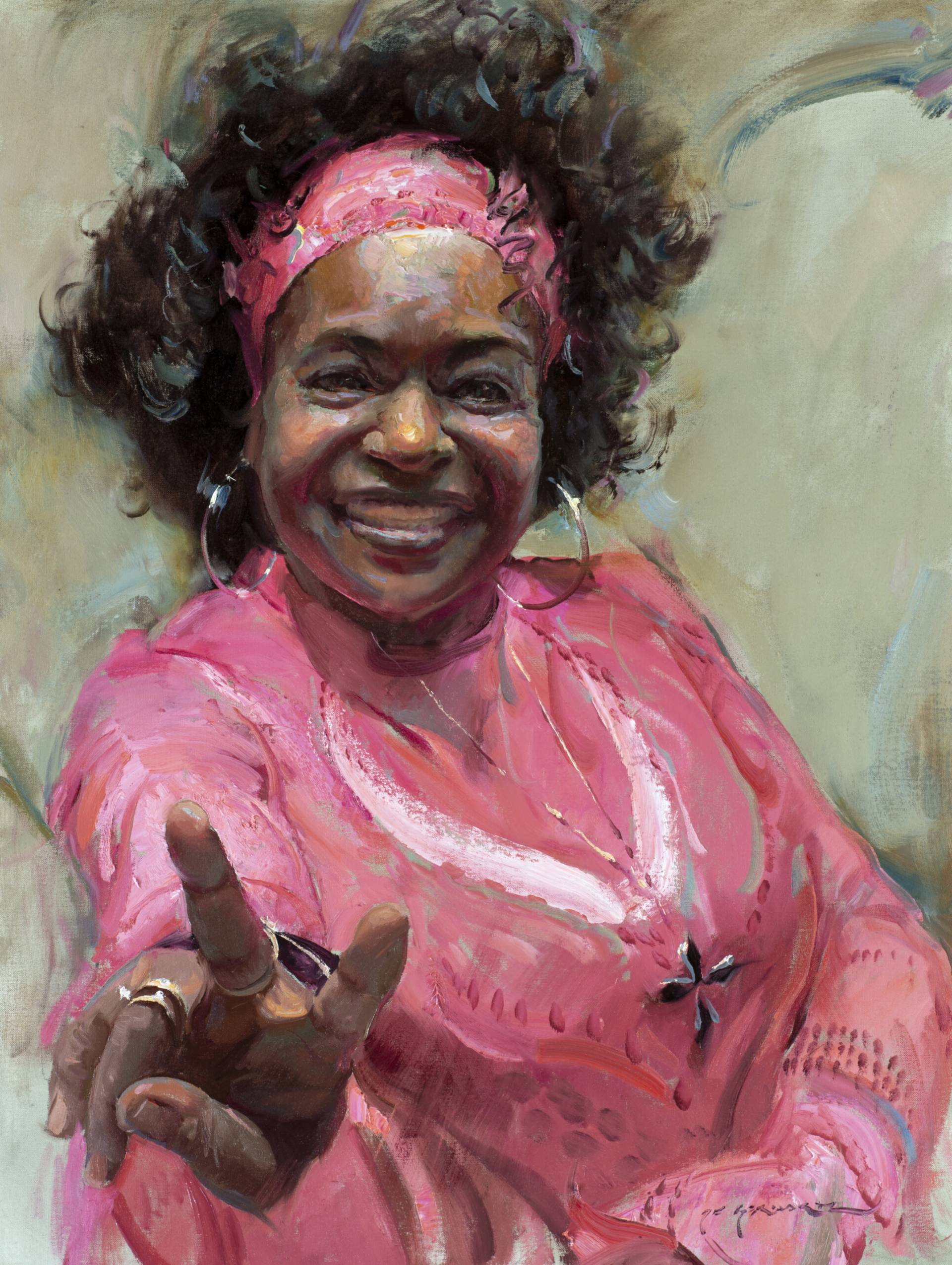 It can be hard to become something you’ve never seen or imagined for yourself until someone draws it for you. And most of these women had only known themselves as losers. My favorite portrait, by artist Daniel Gerhartz, is of a smiling, fuchsia-clad Shay Bell Curry. She’s wearing hoop earrings and extending her right hand in a peace sign. Instantly I thought, I need to know this woman. But Curry, who died of complications from liver cancer, didn’t get to write her own story. Instead, her mentor, and founder of the Center, Brenda Lovelady Spahn, wrote it for her.